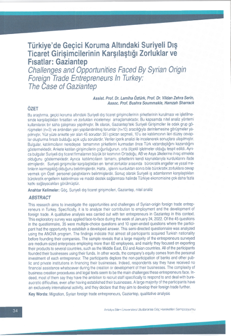 Türkiye'de geçici koruma altındaki Suriyeli dış ticaret girişimcilerinin karşılaştığı zorluklar ve fırsatlar: Gaziantep